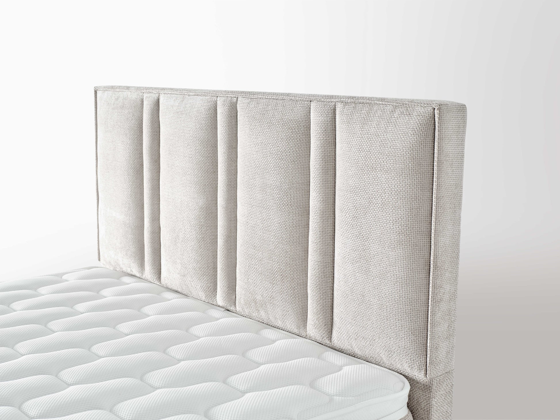 Uniek Design Hoofdbord: Het bed beschikt over een uniek ontworpen hoofdbord met een elegant verticaal stiksel. Dit verfijnde lijnenspel geeft het bed een chique en gestructureerde uitstraling.