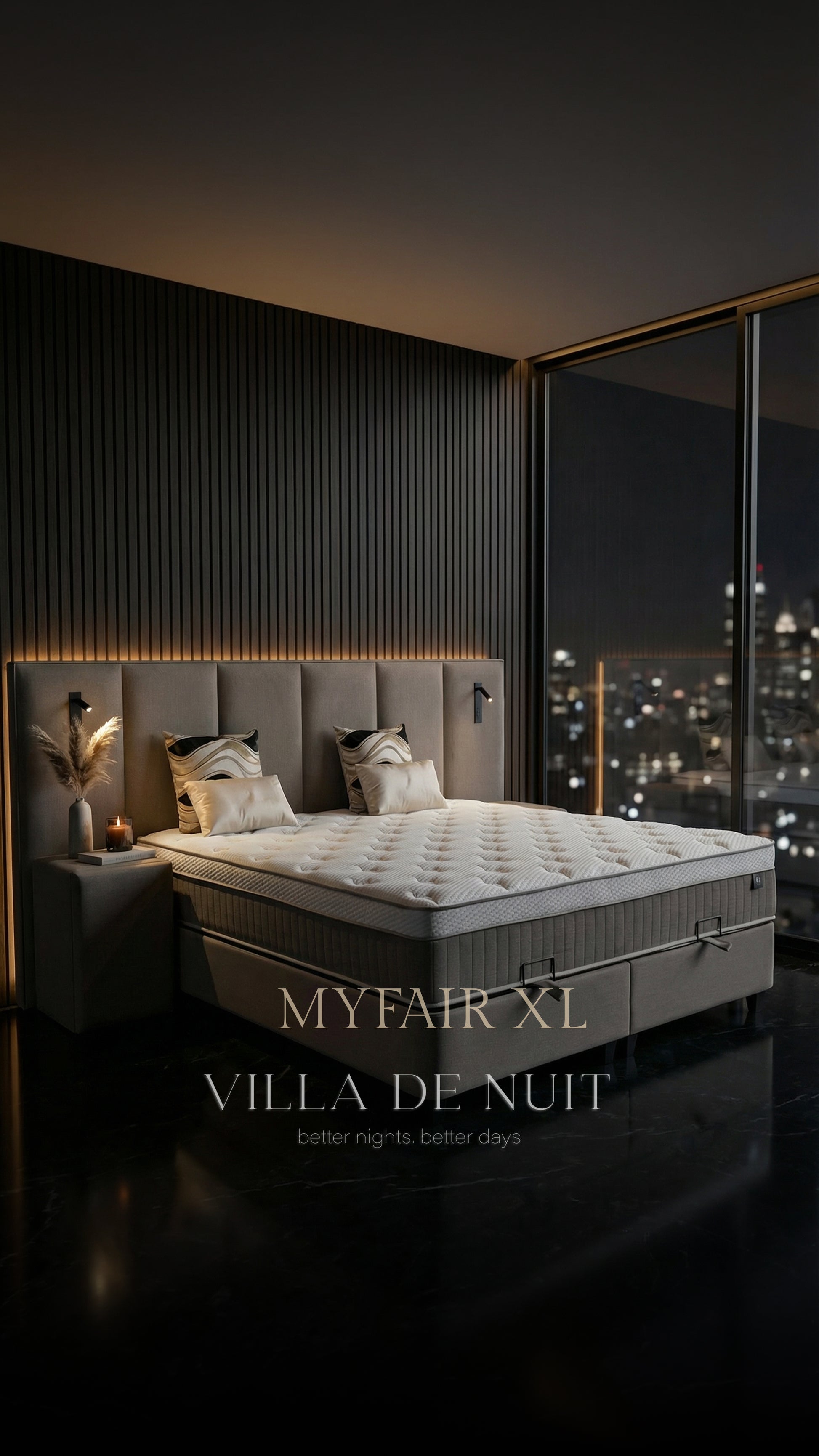 Het My Fair bed verenigt verfijnd vakmanschap met doordacht comfort. De combinatie van het elegante verticaal gekanaliseerde design, het ergonomische 7-zones matrassysteem en praktische opbergoplossingen maakt dit bed tot een luxueus middelpunt van uw slaapkamer, waar stijl en functionaliteit naadloos samenkomen.