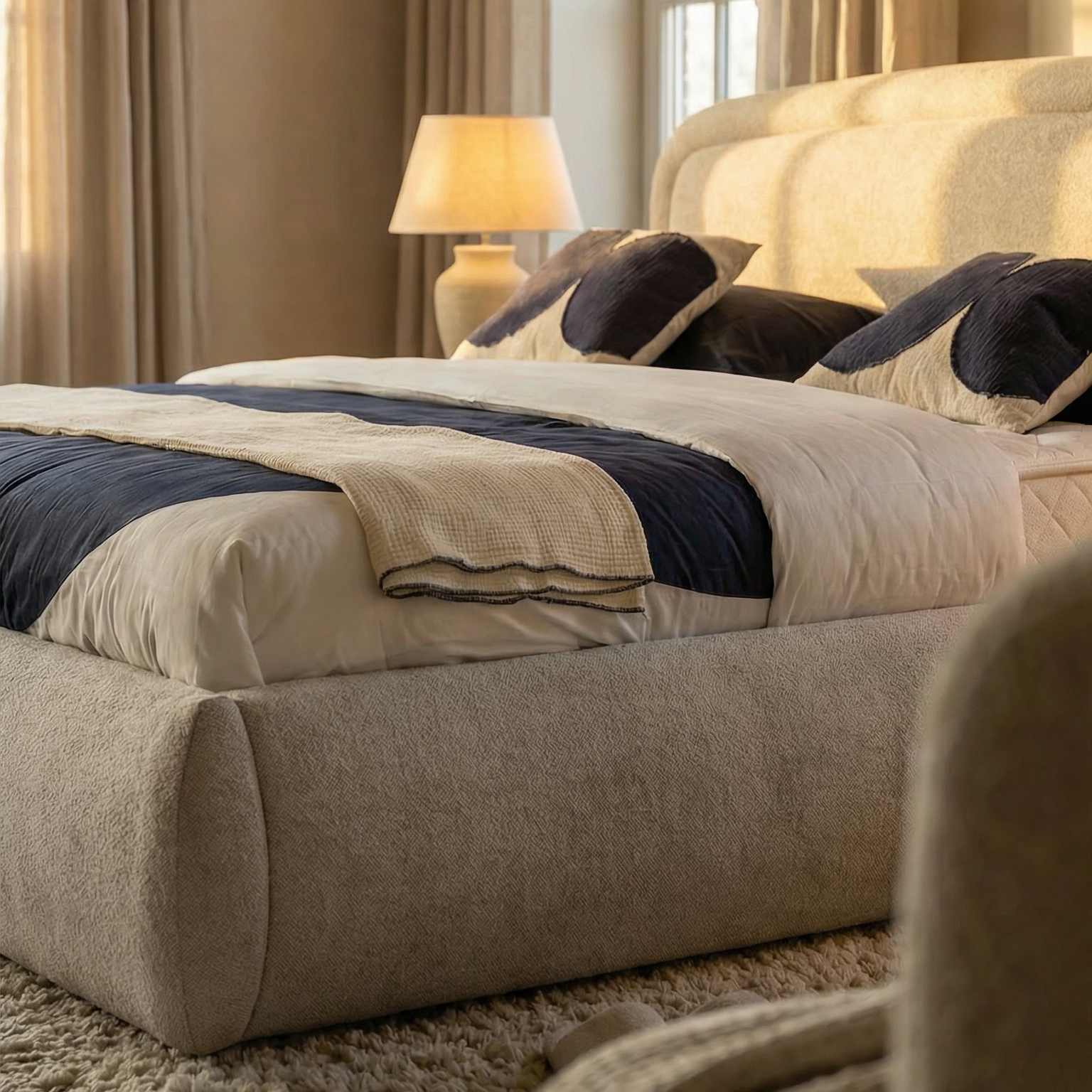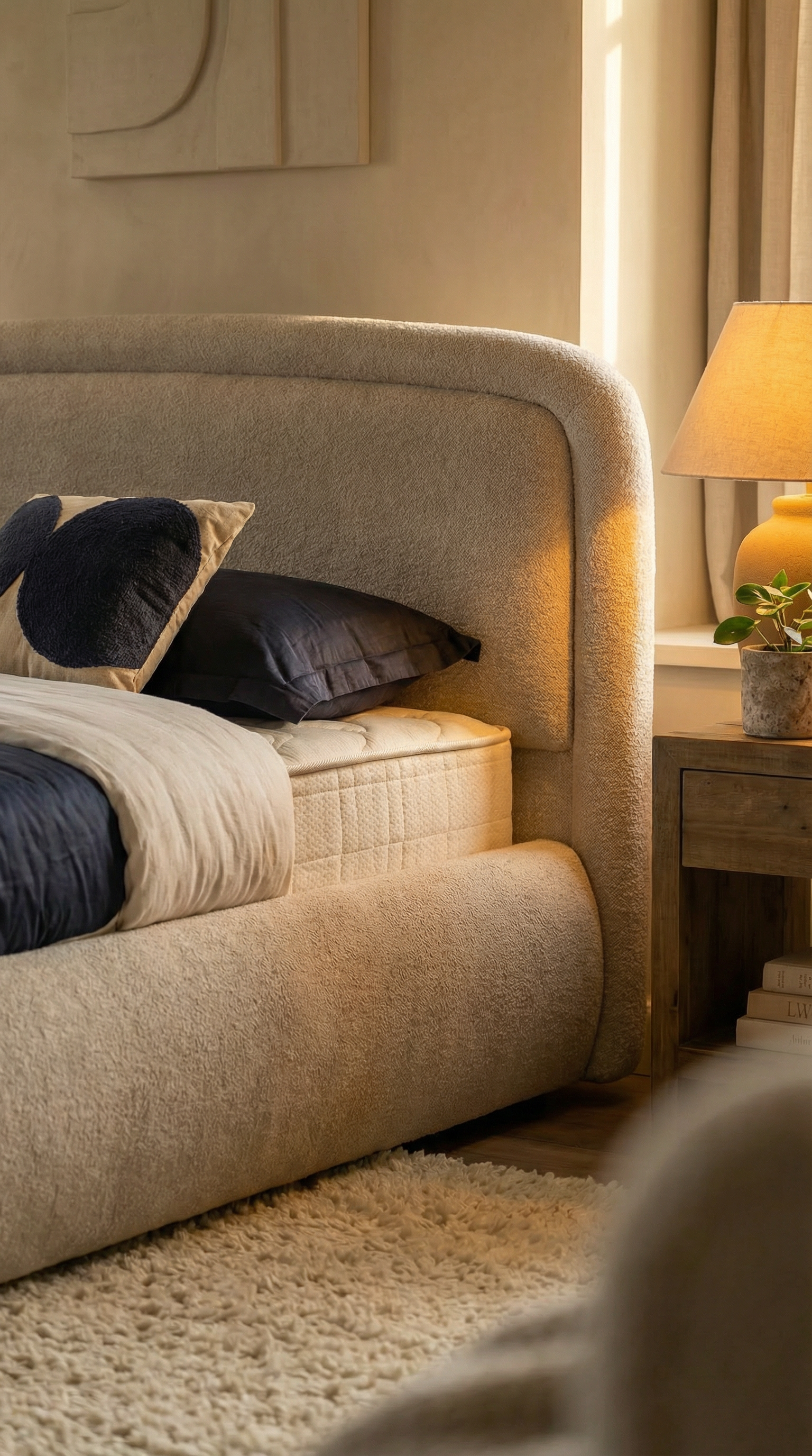 Het Olbia Bed is de perfecte synergie tussen modern, organisch design en een ongeëvenaard slaapcomfort. Met zijn zachte, afgeronde vormen en verfijnde afwerking brengt dit bed een serene en luxueuze sfeer in elke slaapkamer, waarbij de hoogwaardige materialen en de subtiele textuur garant staan voor een rustgevende, hotel-waardige ervaring in eigen huis.